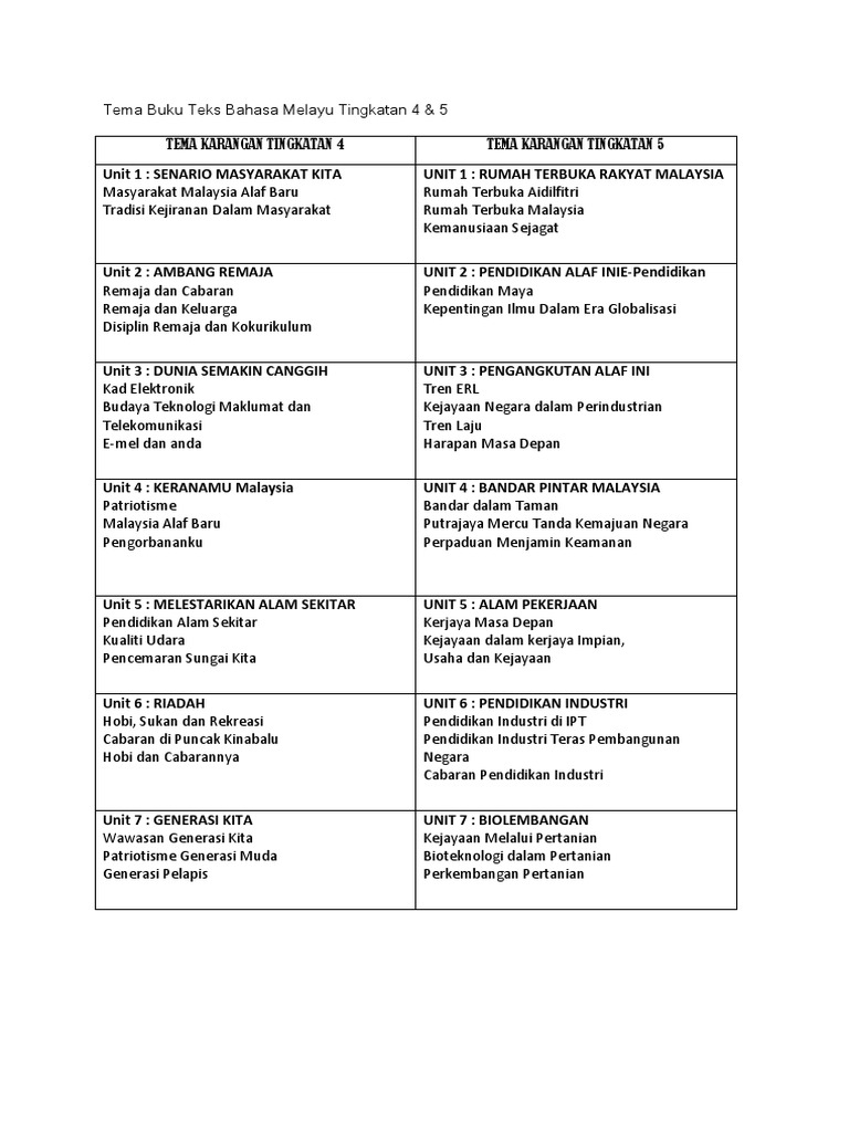 Tema Buku Teks Bahasa Melayu Tingkatan 4 5 Pdf
